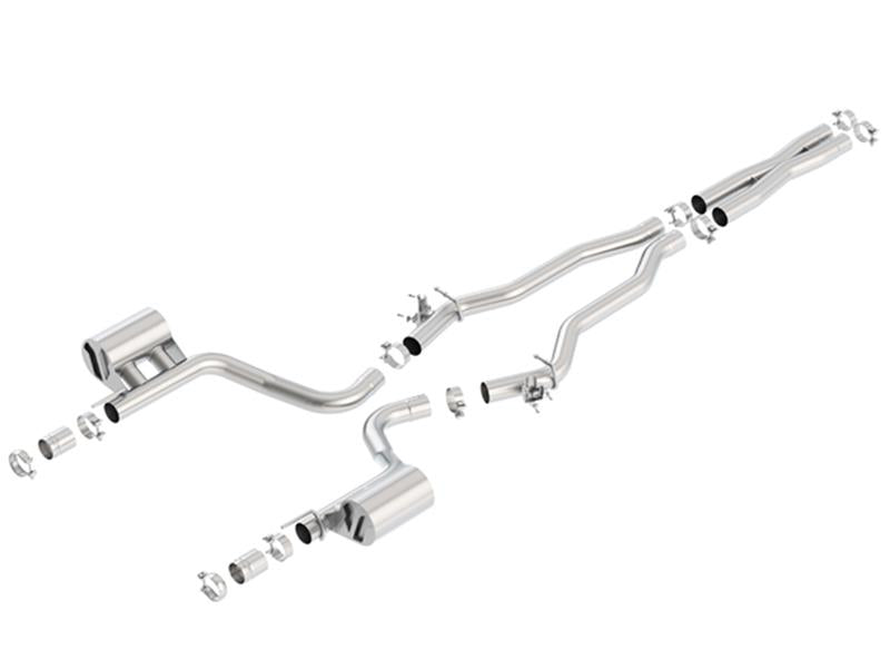This 3" diameter Cat-Back(tm) system features a Merge X-Pipe for increased performance and improved sound. This system INCLUDES MDS (multi-displacement system) valve simulators which ELIMINATE the MDS valves. This avoids any warning lights on the dash while providing maximum flow at all times. The system delivers the aggressive ATAK(r) sound with no drone inside the vehicle. Tips NOT included. Use factory valance / tips. BORLA(r) Cat-Back(tm) & Axle-Back exhaust systems feature patented straight-through and multi-core technology to unleash hidden horsepower. Increased exhaust velocity adds power, driving excitement, fuel economy, and the distinctive BORLA(r) Sound of Power respected by motoring enthusiasts everywhere. Each system is built from premium T-304 austenitic stainless steel, superior to T-400 series knockoffs (such as 409), to give you the absolute best in performance and durability. Ultra-smooth mandrel bends ensure maximum flow & power, and precision computer numerical control (CNC) manufacturing ensures an accurate fit. Best of all, BORLA(r) stands behind every system with a Million-Mile Warranty. Just what you’d expect from the world’s most experienced (and most winning) exhaust brand.