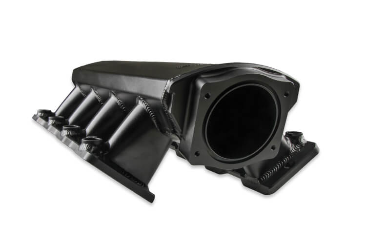 - Intake runners with tapered top is designed to increase air velocity and more evenly distribute airflow to all 8 cylinders improving performance and throttle response