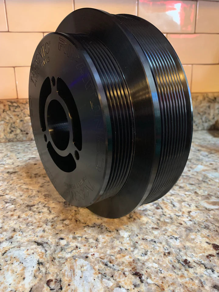 This can be used with the stock upper pulley to be as “incognito” as possible, or with any other upper pulley on the market to increase your boost even further without the labor or modifications that the other crank dampeners on the market require.