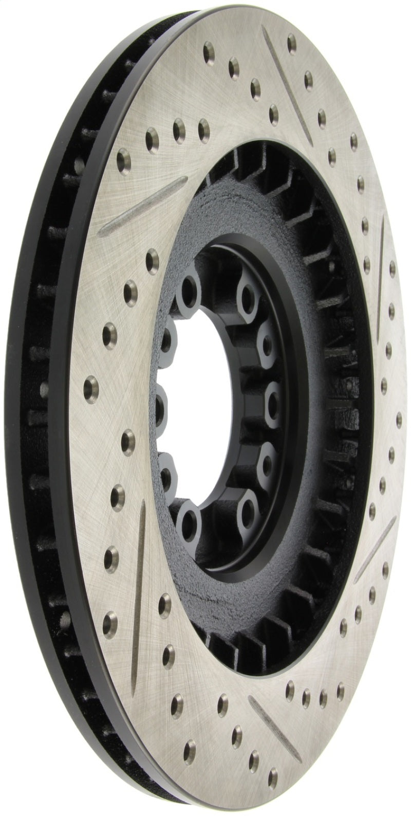 StopTech Drilled and Slotted Sport Rotors are 1-piece direct replacement brake discs for factory brake systems and stock calipers that look great behind your wheels – and offer significantly improved braking performance. The unique cross-drilling and slotting aids with heat and brake dust dispersal, prevents glazing of the pads, adds bite and improves wet and dry braking performance. Built to last, the black e-coating provides protection from corrosion and the high carbon metallurgy (in most applications) offers quieter operation, better crack resistance and increased performance.