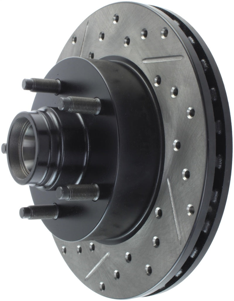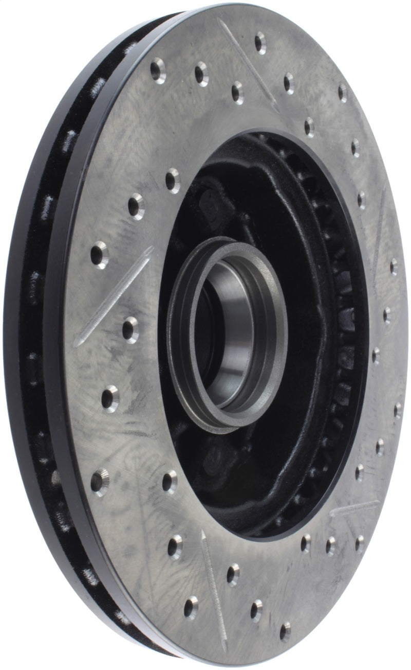StopTech Drilled and Slotted Sport Rotors are 1-piece direct replacement brake discs for factory brake systems and stock calipers that look great behind your wheels – and offer significantly improved braking performance. The unique cross-drilling and slotting aids with heat and brake dust dispersal, prevents glazing of the pads, adds bite and improves wet and dry braking performance. Built to last, the black e-coating provides protection from corrosion and the high carbon metallurgy (in most applications) offers quieter operation, better crack resistance and increased performance.