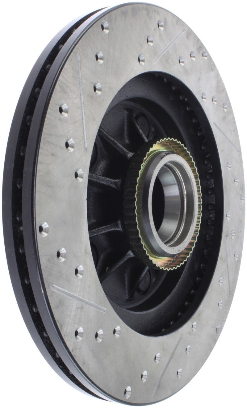StopTech Drilled and Slotted Sport Rotors are 1-piece direct replacement brake discs for factory brake systems and stock calipers that look great behind your wheels – and offer significantly improved braking performance. The unique cross-drilling and slotting aids with heat and brake dust dispersal, prevents glazing of the pads, adds bite and improves wet and dry braking performance. Built to last, the black e-coating provides protection from corrosion and the high carbon metallurgy (in most applications) offers quieter operation, better crack resistance and increased performance.
