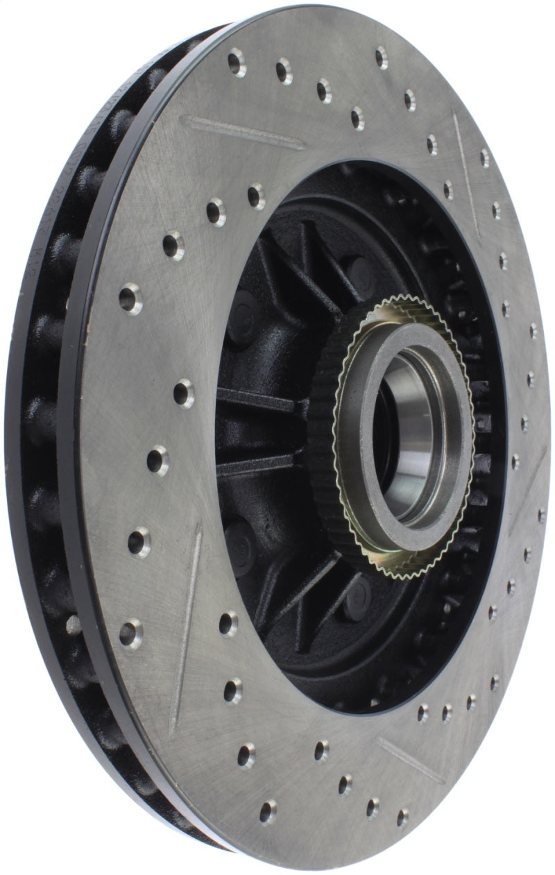 StopTech Drilled and Slotted Sport Rotors are 1-piece direct replacement brake discs for factory brake systems and stock calipers that look great behind your wheels – and offer significantly improved braking performance. The unique cross-drilling and slotting aids with heat and brake dust dispersal, prevents glazing of the pads, adds bite and improves wet and dry braking performance. Built to last, the black e-coating provides protection from corrosion and the high carbon metallurgy (in most applications) offers quieter operation, better crack resistance and increased performance.