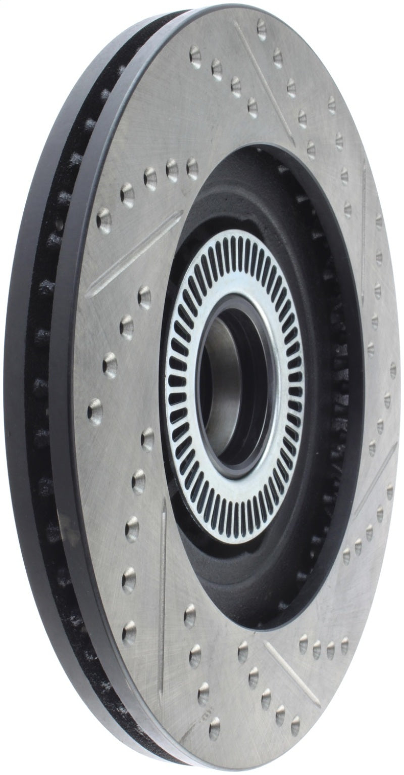 StopTech Drilled and Slotted Sport Rotors are 1-piece direct replacement brake discs for factory brake systems and stock calipers that look great behind your wheels – and offer significantly improved braking performance. The unique cross-drilling and slotting aids with heat and brake dust dispersal, prevents glazing of the pads, adds bite and improves wet and dry braking performance. Built to last, the black e-coating provides protection from corrosion and the high carbon metallurgy (in most applications) offers quieter operation, better crack resistance and increased performance.