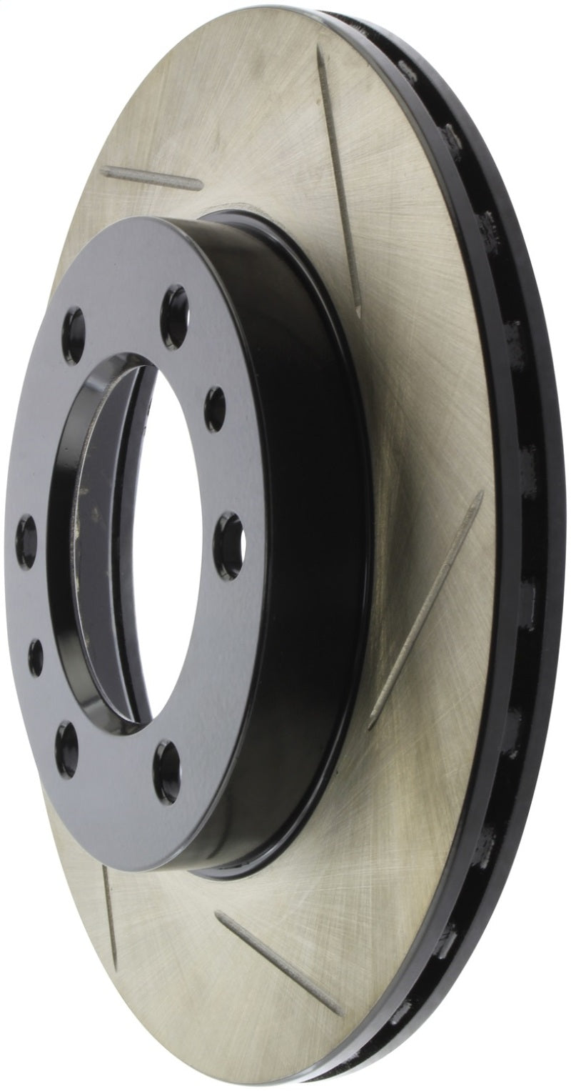 StopTech Slotted Sport Rotors are 1-piece direct replacement brake discs for factory brake systems and stock calipers that look great behind your wheels – and offer significantly improved braking performance. The unique slotting aids with heat and brake dust dispersal, prevents glazing of the pads, adds bite and improves wet and dry braking performance. Built to last, the black e-coating provides protection from corrosion and the high carbon metallurgy (in most applications) offers quieter operation, better crack resistance and increased performance.