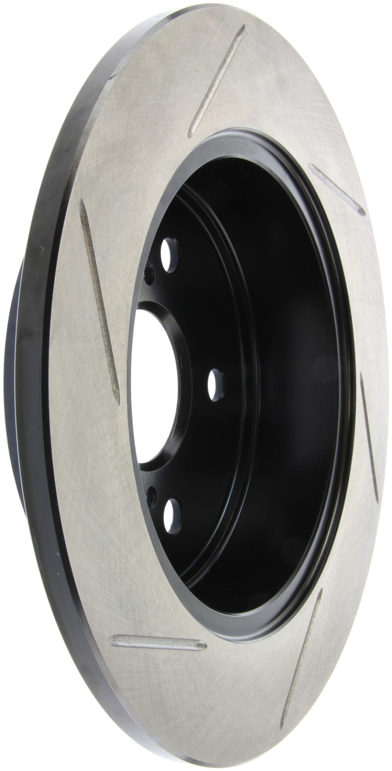 StopTech Slotted Sport Rotors are 1-piece direct replacement brake discs for factory brake systems and stock calipers that look great behind your wheels – and offer significantly improved braking performance. The unique slotting aids with heat and brake dust dispersal, prevents glazing of the pads, adds bite and improves wet and dry braking performance. Built to last, the black e-coating provides protection from corrosion and the high carbon metallurgy (in most applications) offers quieter operation, better crack resistance and increased performance.