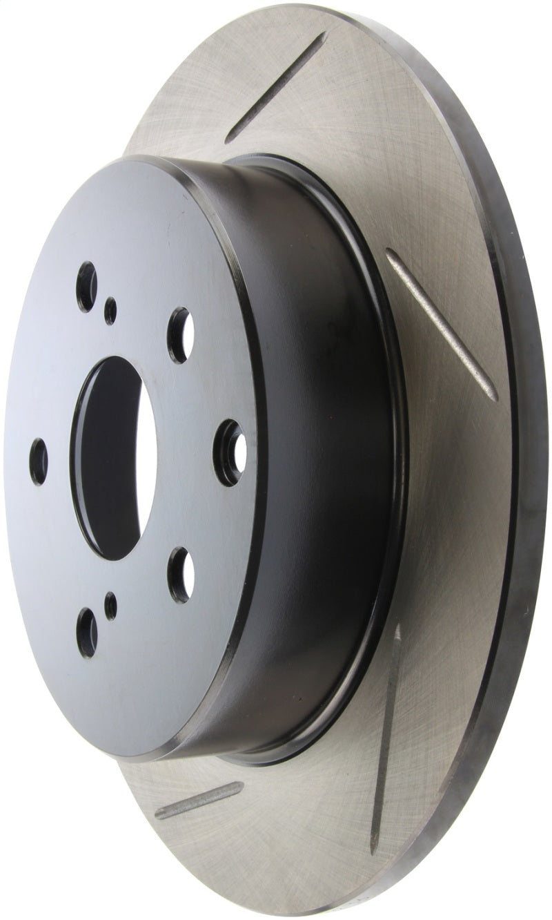 StopTech Slotted Sport Rotors are 1-piece direct replacement brake discs for factory brake systems and stock calipers that look great behind your wheels – and offer significantly improved braking performance. The unique slotting aids with heat and brake dust dispersal, prevents glazing of the pads, adds bite and improves wet and dry braking performance. Built to last, the black e-coating provides protection from corrosion and the high carbon metallurgy (in most applications) offers quieter operation, better crack resistance and increased performance.