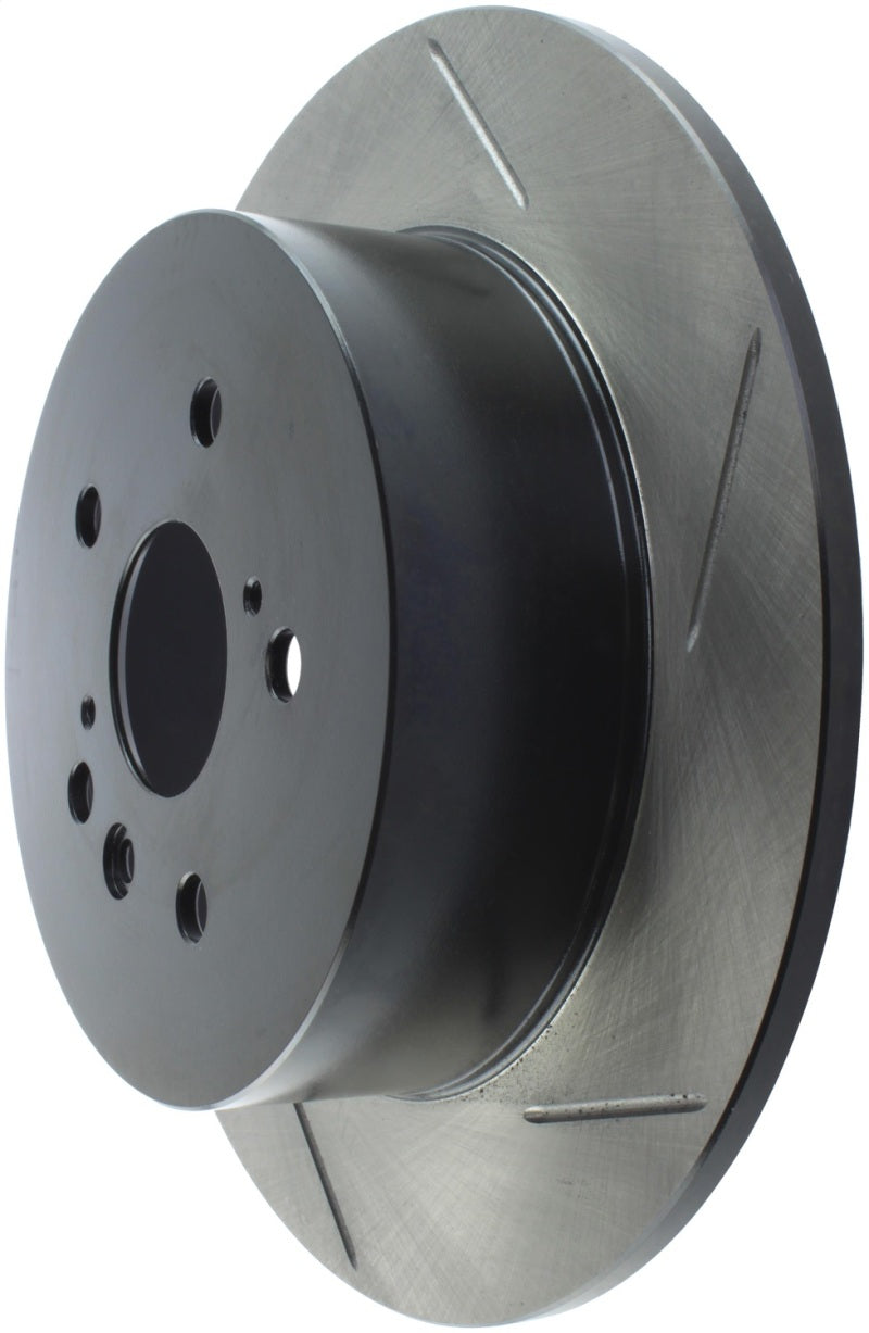 StopTech Slotted Sport Rotors are 1-piece direct replacement brake discs for factory brake systems and stock calipers that look great behind your wheels – and offer significantly improved braking performance. The unique slotting aids with heat and brake dust dispersal, prevents glazing of the pads, adds bite and improves wet and dry braking performance. Built to last, the black e-coating provides protection from corrosion and the high carbon metallurgy (in most applications) offers quieter operation, better crack resistance and increased performance.