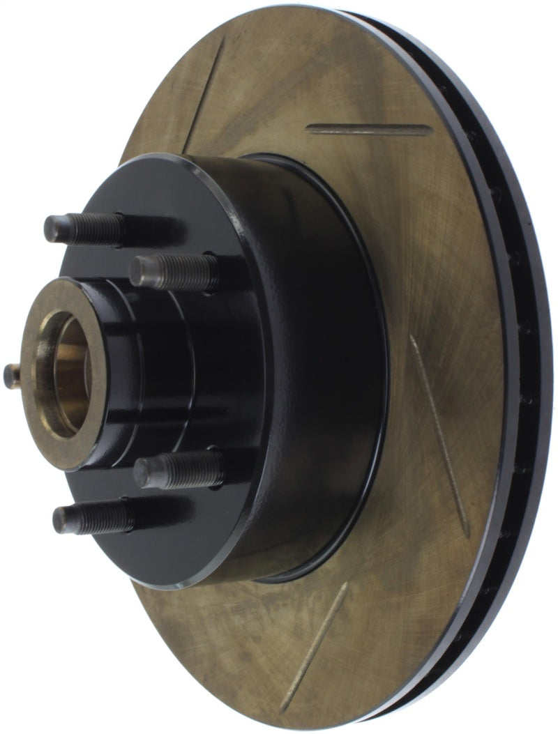 StopTech Slotted Sport Rotors are 1-piece direct replacement brake discs for factory brake systems and stock calipers that look great behind your wheels – and offer significantly improved braking performance. The unique slotting aids with heat and brake dust dispersal, prevents glazing of the pads, adds bite and improves wet and dry braking performance. Built to last, the black e-coating provides protection from corrosion and the high carbon metallurgy (in most applications) offers quieter operation, better crack resistance and increased performance.