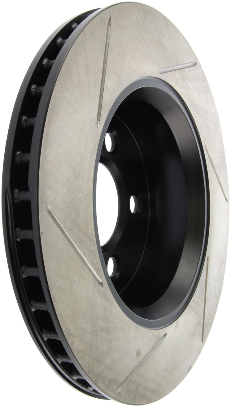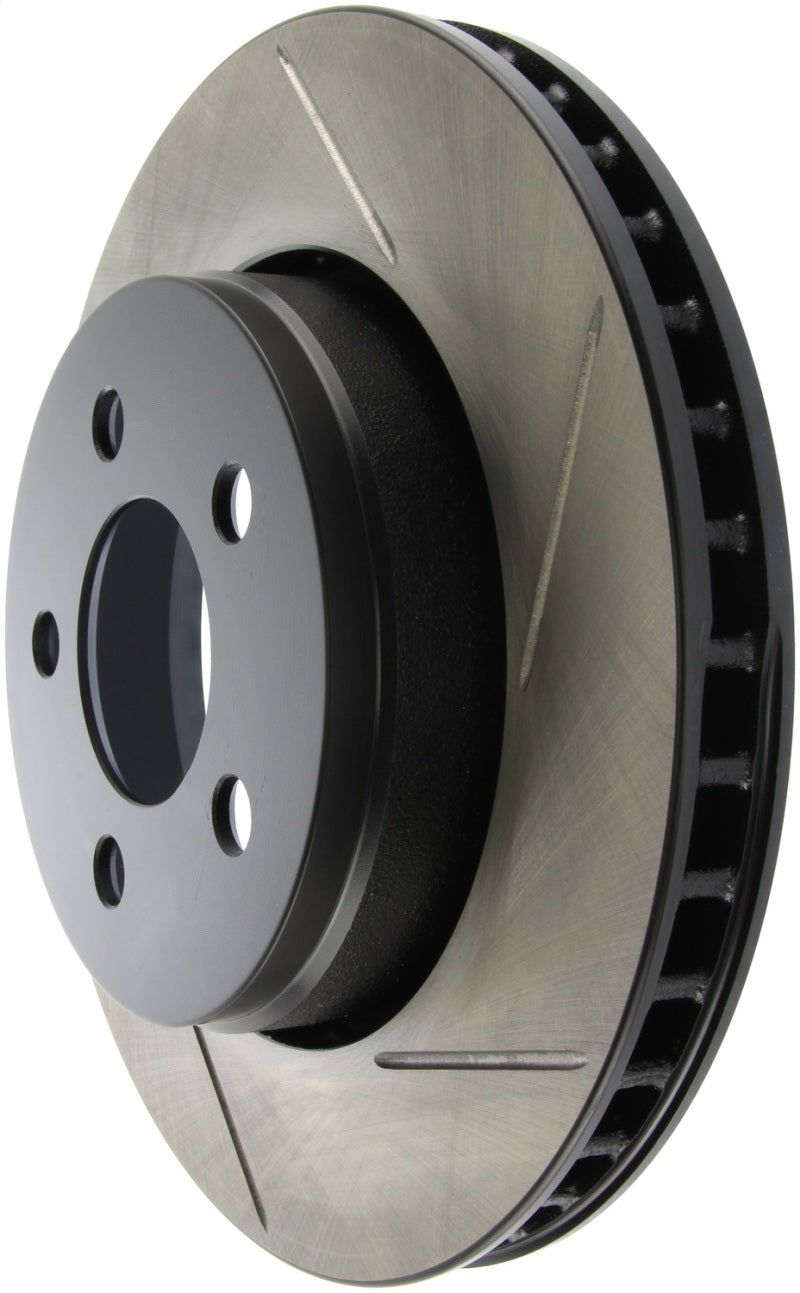 StopTech Slotted Sport Rotors are 1-piece direct replacement brake discs for factory brake systems and stock calipers that look great behind your wheels – and offer significantly improved braking performance. The unique slotting aids with heat and brake dust dispersal, prevents glazing of the pads, adds bite and improves wet and dry braking performance. Built to last, the black e-coating provides protection from corrosion and the high carbon metallurgy (in most applications) offers quieter operation, better crack resistance and increased performance.