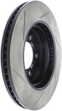 StopTech Slotted Sport Rotors are 1-piece direct replacement brake discs for factory brake systems and stock calipers that look great behind your wheels – and offer significantly improved braking performance. The unique slotting aids with heat and brake dust dispersal, prevents glazing of the pads, adds bite and improves wet and dry braking performance. Built to last, the black e-coating provides protection from corrosion and the high carbon metallurgy (in most applications) offers quieter operation, better crack resistance and increased performance.