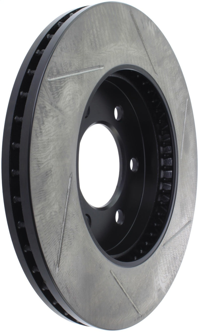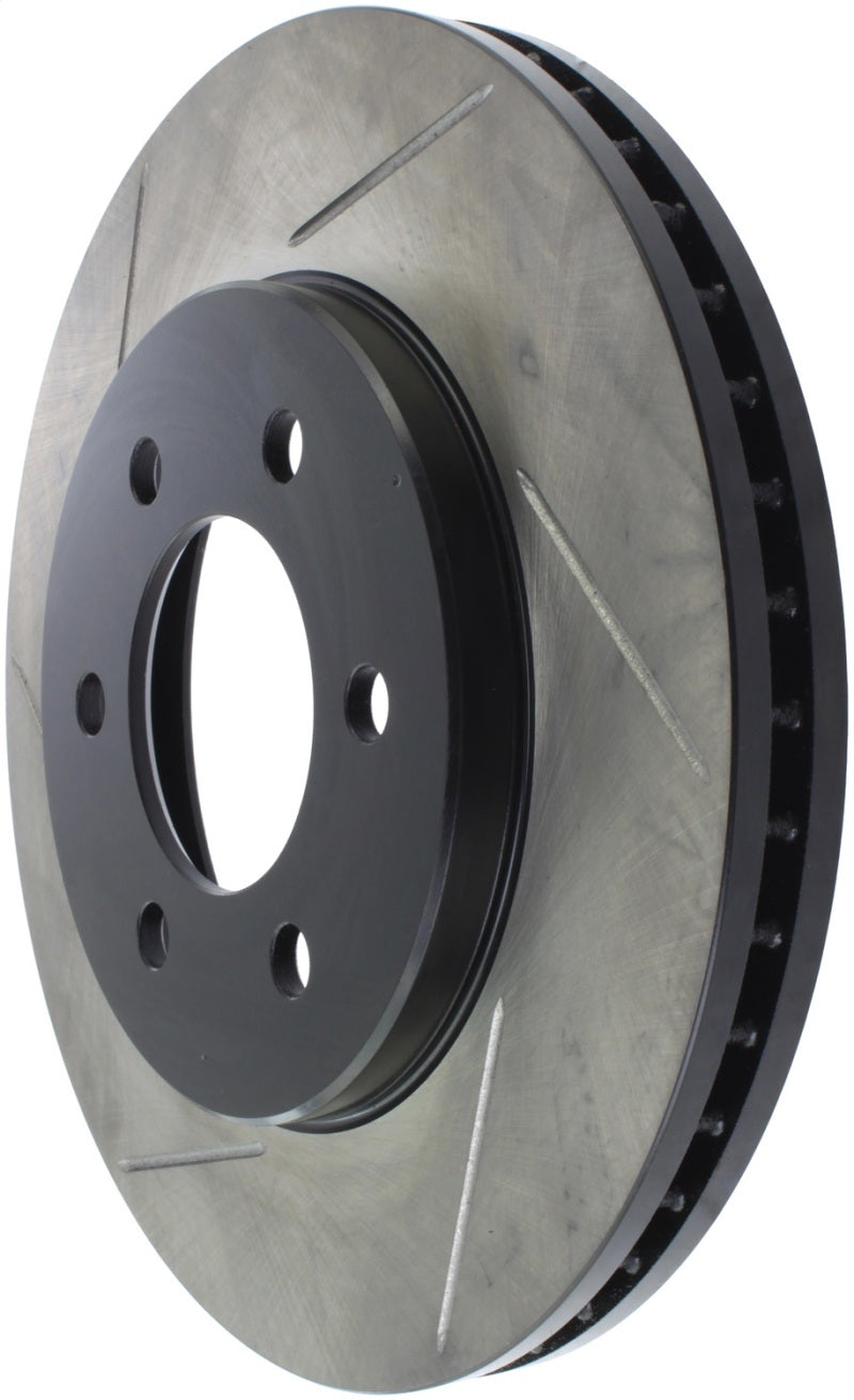 StopTech Slotted Sport Rotors are 1-piece direct replacement brake discs for factory brake systems and stock calipers that look great behind your wheels – and offer significantly improved braking performance. The unique slotting aids with heat and brake dust dispersal, prevents glazing of the pads, adds bite and improves wet and dry braking performance. Built to last, the black e-coating provides protection from corrosion and the high carbon metallurgy (in most applications) offers quieter operation, better crack resistance and increased performance.