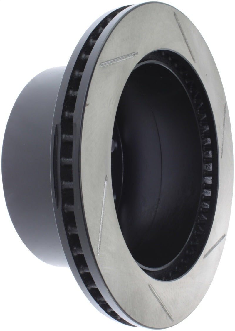 StopTech Slotted Sport Rotors are 1-piece direct replacement brake discs for factory brake systems and stock calipers that look great behind your wheels – and offer significantly improved braking performance. The unique slotting aids with heat and brake dust dispersal, prevents glazing of the pads, adds bite and improves wet and dry braking performance. Built to last, the black e-coating provides protection from corrosion and the high carbon metallurgy (in most applications) offers quieter operation, better crack resistance and increased performance.