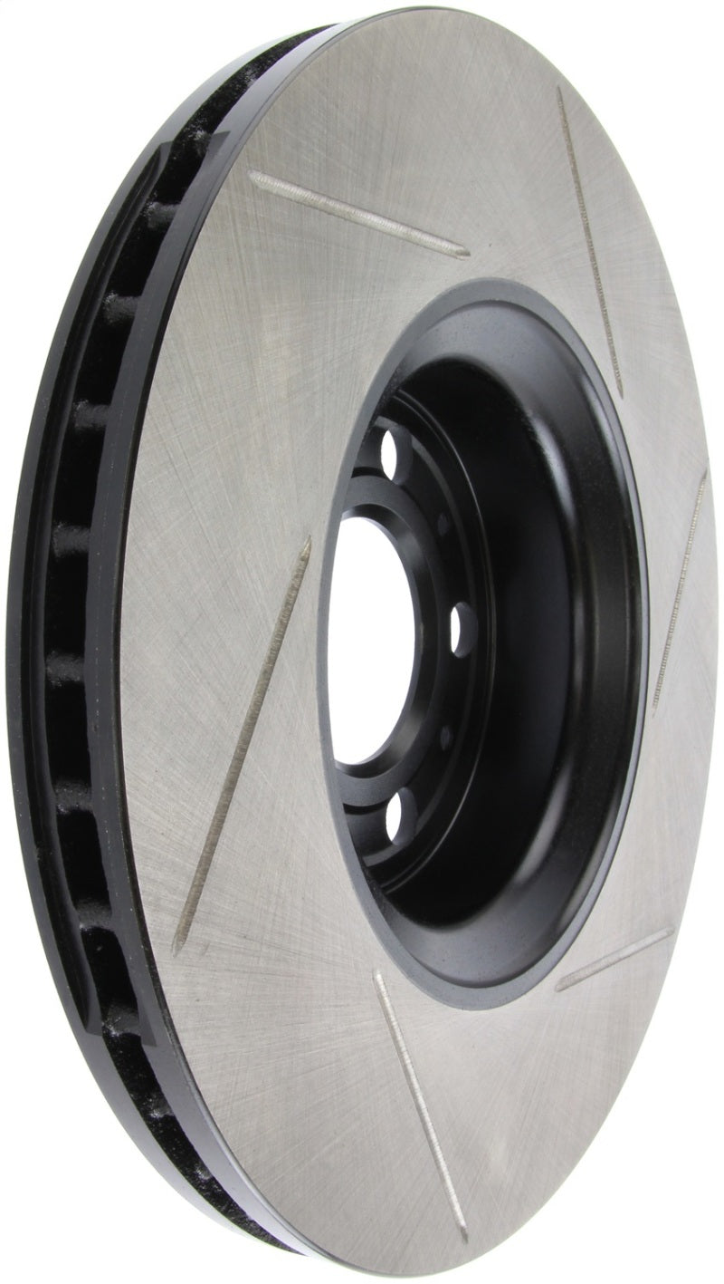 StopTech Slotted Sport Rotors are 1-piece direct replacement brake discs for factory brake systems and stock calipers that look great behind your wheels – and offer significantly improved braking performance. The unique slotting aids with heat and brake dust dispersal, prevents glazing of the pads, adds bite and improves wet and dry braking performance. Built to last, the black e-coating provides protection from corrosion and the high carbon metallurgy (in most applications) offers quieter operation, better crack resistance and increased performance.