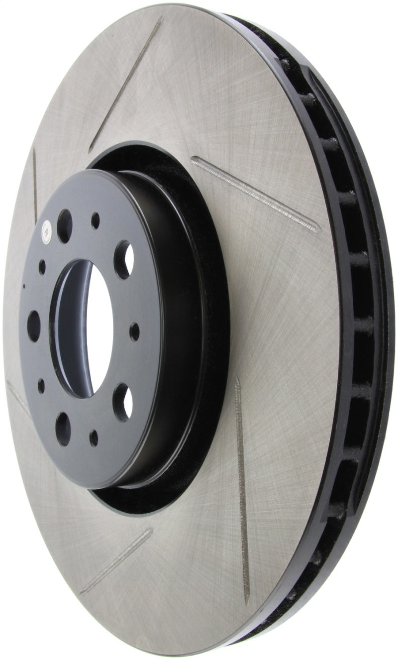StopTech Slotted Sport Rotors are 1-piece direct replacement brake discs for factory brake systems and stock calipers that look great behind your wheels – and offer significantly improved braking performance. The unique slotting aids with heat and brake dust dispersal, prevents glazing of the pads, adds bite and improves wet and dry braking performance. Built to last, the black e-coating provides protection from corrosion and the high carbon metallurgy (in most applications) offers quieter operation, better crack resistance and increased performance.
