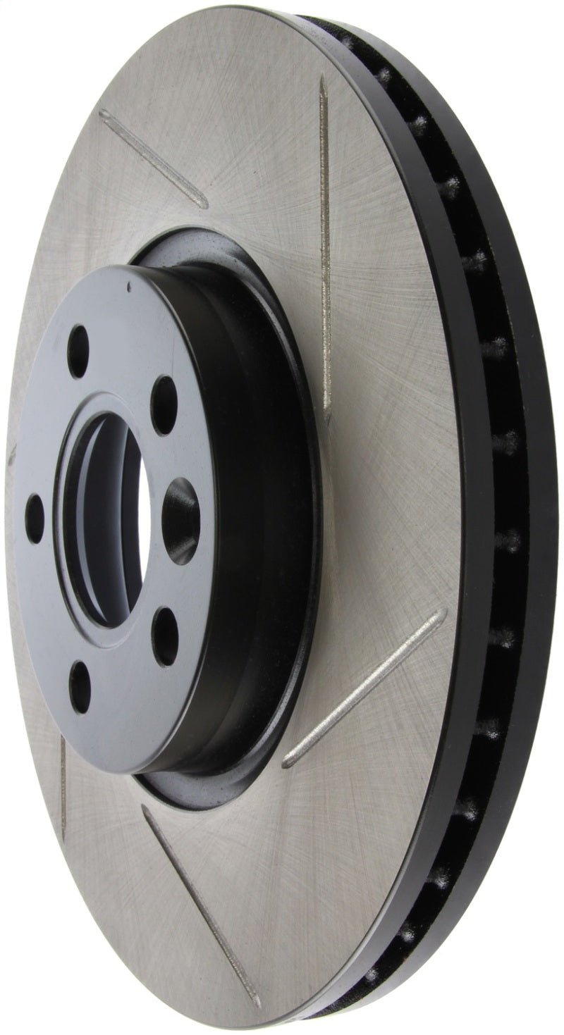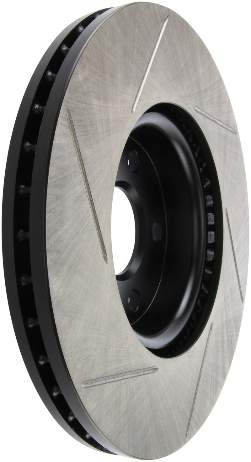 StopTech Slotted Sport Rotors are 1-piece direct replacement brake discs for factory brake systems and stock calipers that look great behind your wheels – and offer significantly improved braking performance. The unique slotting aids with heat and brake dust dispersal, prevents glazing of the pads, adds bite and improves wet and dry braking performance. Built to last, the black e-coating provides protection from corrosion and the high carbon metallurgy (in most applications) offers quieter operation, better crack resistance and increased performance.