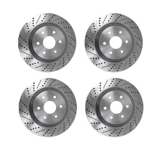 Front Coilovers / Rear Shocks / Cat-Back Exhaust / Performance Tuner Module / Front Brake Rotors & Caliper Brackets / Rear Brake Rotors & Caliper Brackets