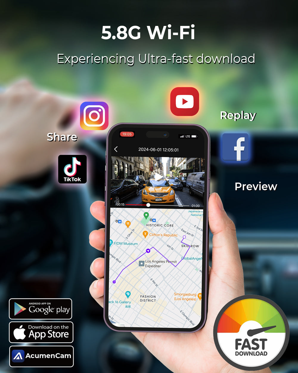 【Convenient Route Tracking】The built-in GPS records real-time location and speed on each video segment. This data can be reviewed via the mobile app and serve as key evidence in case of an accident.