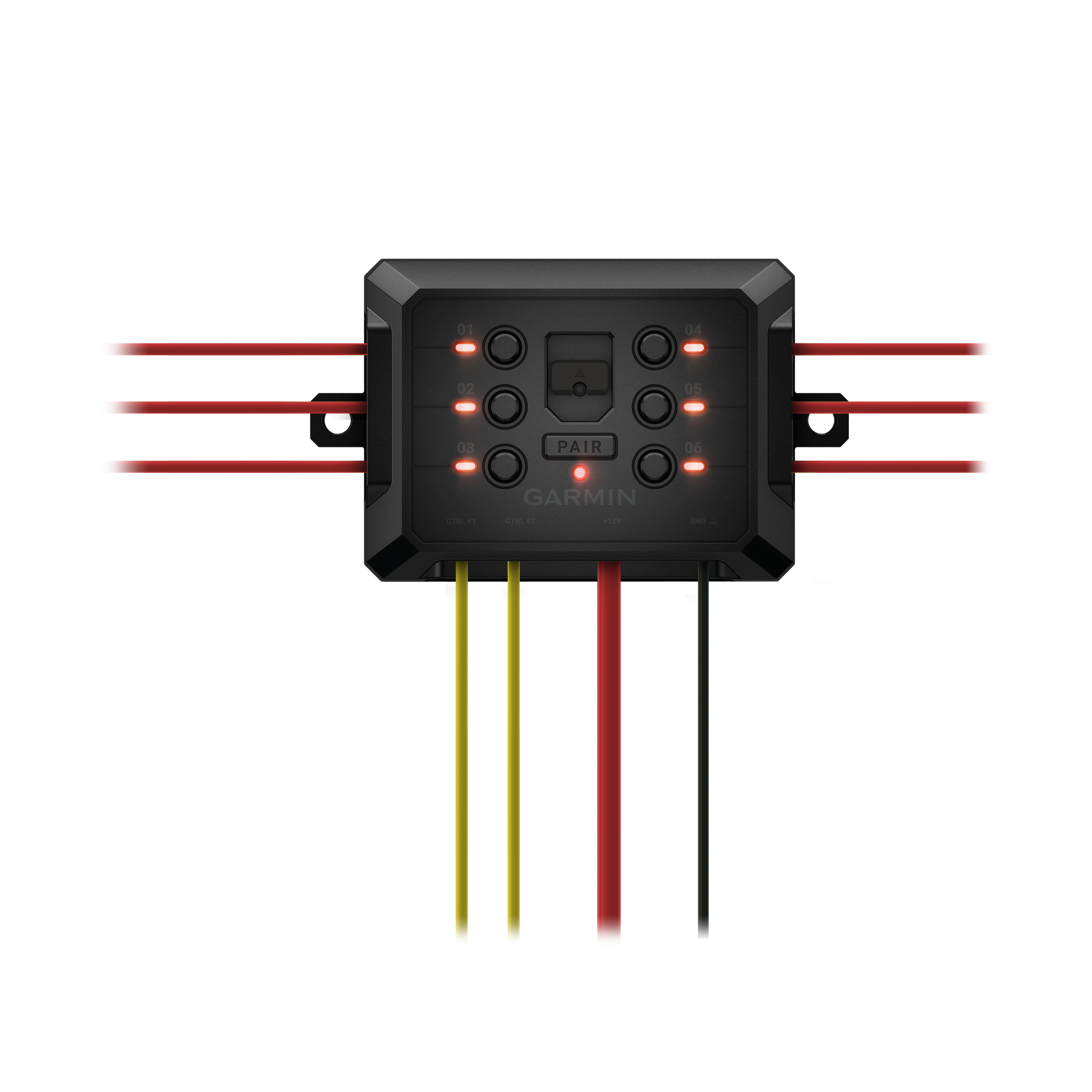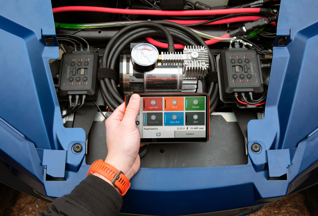 Garmin Power Switch is the compact digital switch box that offers convenient centralized control of your vehicle’s 12-volt accessories from a compatible1 Garmin navigator or smartphone2.