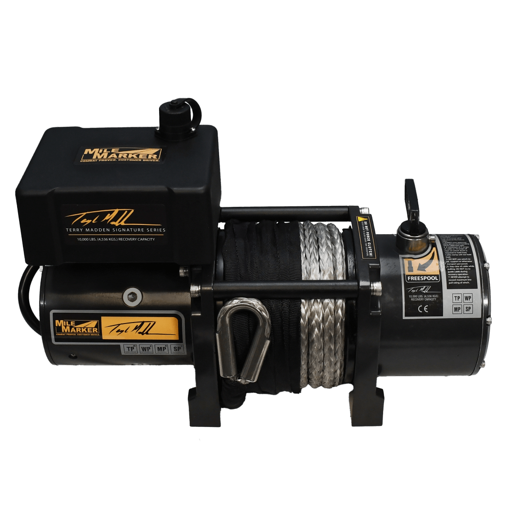 The Mile Marker Terry Madden Signature Series winches are designed for the rigorous demands of rock crawling competitions and provide exceptional features for competitors by offering the flexibility to pull from the 1st or 4th layer. These lightweight winches operate efficiently with minimal power consumption, ensuring reliable performance.