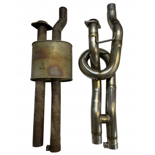 Our equal length resonator delete kit is a game changer for the Gen 2 Raptors. Now your Gen 2 can sound like a Gen 3! Our equal length "trombone" resonator delete is a one piece construction for easy installation and made of 3" mandrel bent 304 stainless steel. We included an h-pipe in the design to balance out both driver and passenger side exhaust after the loop because the factory muffler does not have a cross over in it.